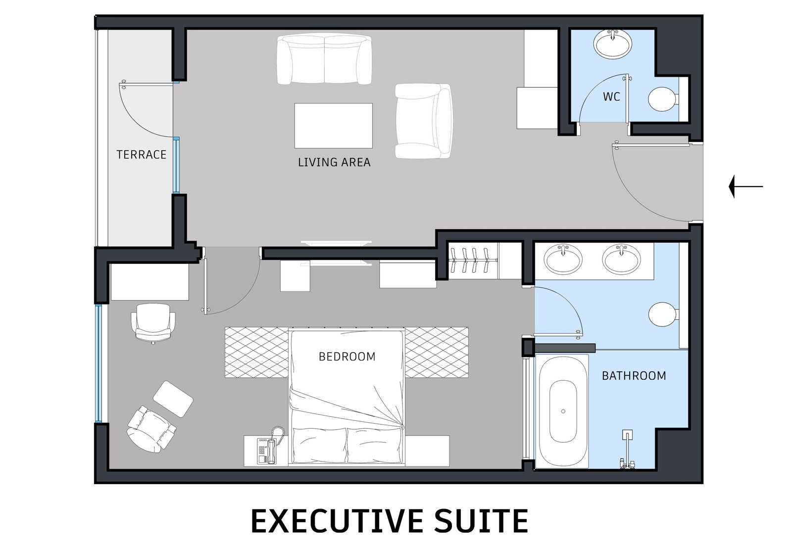 Whether preparing for meetings or winding down after a busy day, the Executive Suite delivers a balanced and sophisticated stay.