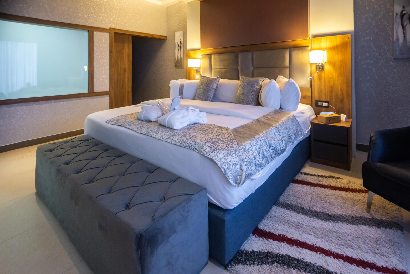 The Presidential Suite represents the highest expression of luxury at Western Serene Atlantic Hotel. Designed for distinguished guests who expect space, privacy, and refined comfort, this suite offers panoramic views, elegant interiors, and a seamless blend of relaxation and sophistication.